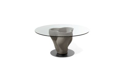Mit dem Esstisch Corail ist Roche Bobois eine Weltneuheit in der Möbelbranche gelungen: Ein zentrales Tischbein, hergestellt mithilfe eines 3D-Druckers aus Beton.