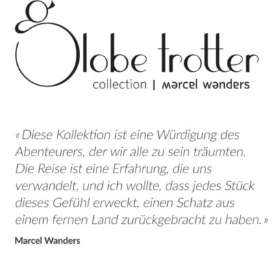 Es ist der rote Faden, der die verschiedenen Teile, die verschiedenen Universen verbindet. Durch eine gekonnte Mischung historischer Bezüge und imaginärer Reisen bietet uns Marcel Wanders mit Globe Trotter eine „Spazierkollektion”, die romantisch und poetisch zugleich ist.