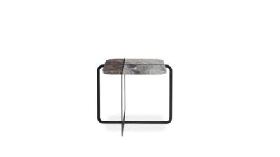 Dolomie's crossed frame (in black or brass) divides the tops into quarters, making it possible to alternate two marble choices.