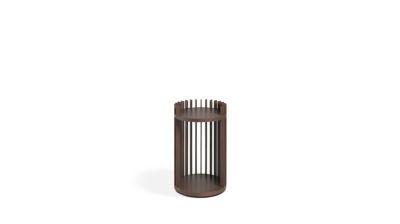 The Jalousie collection plays on the repetition of wood slats that develop in a rounded shape to create dynamic graphics and visual effects of light and gradients.