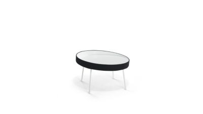 Coin is a collection of tables with a rounded and deliberately unbalanced shape, inspired by the movement of a spinning coin. Their ring is upholstered in (almost!) all the fabrics from the Roche Bobois collection.