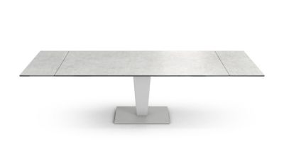The Nephtis dining table is both functional and elegant. The top is made of glass, ceramic, or Fénix® (ultra-resistant laminate) and placed on a central base made of a lacquered steel drum. The two 40 cm extension leaves can increase the length of th...