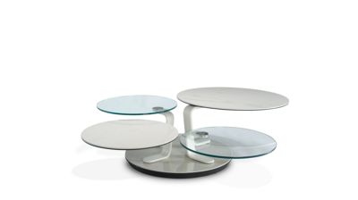 The Quartet cocktail table has got that swing! The moment one top moves, all four tops dance around in unison, increasing the diameter from 85 to 140 cm, as required. Two tops are made of glass, and two of composite ceramic on glass, with a wide rang...