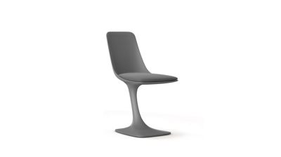 The principle of this chair is a continuous line that starts from the base, continues up the single leg, and extends up the back.