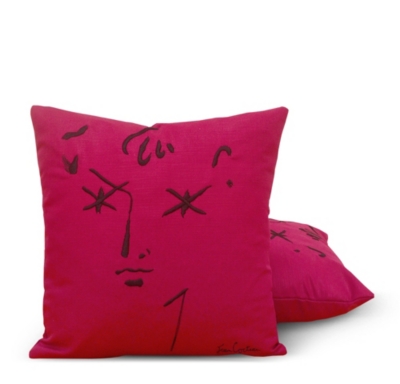 Cushion with 'VISAGES' artwork embroidery on plain velvet. Designed by Jean Cocteau.