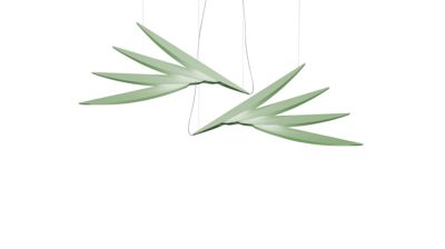 FLOU is a collection of lights inspired by the tropical world. Sophie Larger wanted to create an object that unfolds from the repetition of a module: leaf or feather, its proliferation brings amplitude and lightness to the lamp.