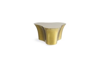 This series of tables showcases a three-lobed shape suggesting an upturned tree trunk. They come in an incredible range of shimmering shades that imitate the changing colors of beetles, and their lightness makes them portable household items.