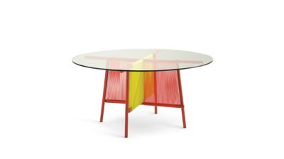 Designed by American designer Stephen Burks, Traveler is a complete collection for reading, dining, and lounging outdoors. Its signature characteristic is the thin lacquered aluminium tube structures with woven coloured cords in three colour combinat...
