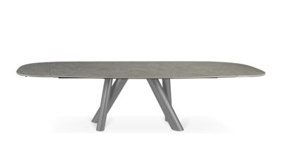 For this table, designer Fabrice Berrux sought to combine a ceramic top with subtle mineral reflections and a crossed steel tube base, evoking the stance of a dancer. Whether oval, rectangular, extendable or fixed, every version of this table blends ...
