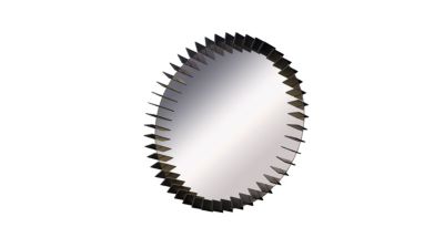 The TURBINE mirror is surrounded by a multitude of oak pieces that are cut and assembled by hand, creating beautiful reflections of light.