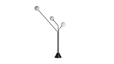 FLORA se développe en arborescence pour former un bouquet lumineux dont les trois sphères composent une petite constellation. Les tiges métalliques enserrent le socle conique de terrazzo dont la forme évasée marque son ancrage.