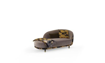 This typical basket shape takes up the codes of the 1920s and modernizes them with its back in a fabric entirely covered with embroidered flowers, contrasting with the understated grey on the seat. The two-tone gold / dark grey finish on the base giv...