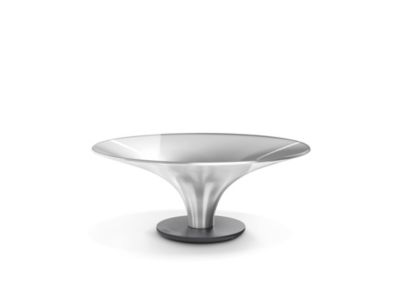 The unique cone shape of the OVNI cocktail tables appear as if the center is being pulled downwards, and the thin concentric stripes create movement. The refined shape extends harmoniously to the base and is balanced by a lacquered steel disc at the ...