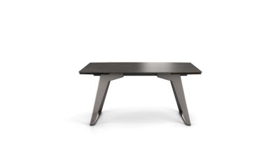 'Diseñada por Mauro Lipparini, presenta una línea minimalista: dos pies oblicuos en U de acero en acabado cromo negro, y un sobre elegantemente en ángulo que recibe un complejo vidrio/cerámica extremadamente resistente, con aspecto de piedras o mármo...