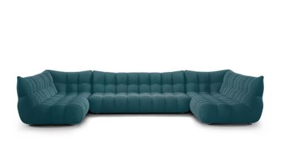 El sofá SETUP se suma a la familia de grandes sofás componibles de Roche Bobois. Los volúmenes son particularmente generosos y el confort excepcional. Las banquetas y las tumbonas, totalmente acolchadas, están revestidas con un nuevo tejido 'bouclett...