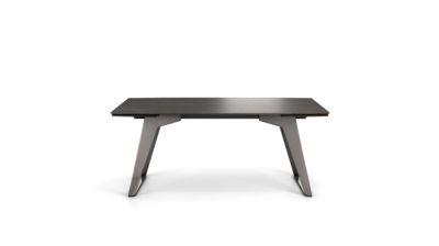 'Diseñada por Mauro Lipparini, presenta una línea minimalista: dos pies oblicuos en U de acero en acabado cromo negro, y un sobre elegantemente en ángulo que recibe un complejo vidrio/cerámica extremadamente resistente, con aspecto de piedras o mármo...
