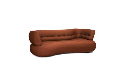 Una línea de sofás envolventes de formato atípico. La curva del sofá permite crear diferentes profundidades de asiento. En los extremos, el respaldo crea una alcoba donde podrá acurrucarse o, por el contrario, estirarse en toda su longitud.
