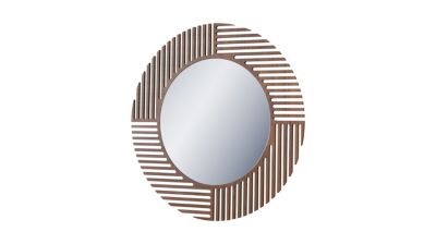 Simple jeu cinétique et graphique, Vektor est un miroir dont le dessin tourne à l’infini. Le vide qui crée le motif, contribue à ancrer l’objet dans son environnement comme un bas relief.