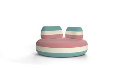 Présenté ici en version outdoor, Bombom est un ensemble de canapés, tables basses, tapis et coussins aux formes organiques Imaginés par l’artiste Joana Vasconcelos. On retrouve dans les lignes de ces modules les formes fluides, colorées et surprenan...