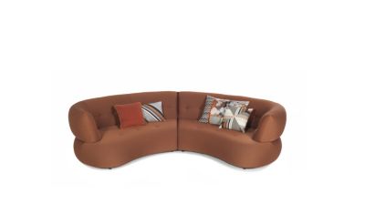 Une ligne de canapés enveloppants au format atypique. La courbe qu'ils dessinent permet de ménager différentes profondeurs d'assises. Aux extrémités, le dossier crée une alcôve pour se blottir ou, au contraire, s'allonger de tout son long.