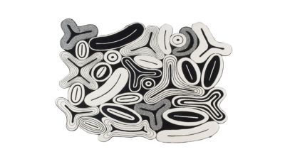 Le tapis tufté Tutti Frutti reprend certains codes des œuvres de l’artiste Joana Vasconcelos : des formes organiques, colorées et gourmandes qui génèrent une forme originale sont mises en relief par une variation d’épaisseurs sur un fond noir.