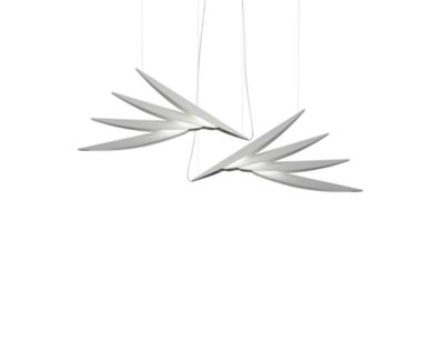 FLOU è una collezione di lampade ispirata al mondo tropicale. Sophie Larger ha voluto creare un oggetto che si sviluppa dalla ripetizione di un modulo: foglia o piuma, la sua proliferazione conferisce ampiezza e leggerezza alla lampada.
