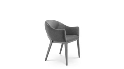 Dotata di braccioli sottili e rivestita in tessuto Grain ricavato da poliestere riciclato, la sedia Milonga è intrisa dell'anima del tango. Le sue gambe profilate sporgono posteriormente a simboleggiare l'arco della tanguera.